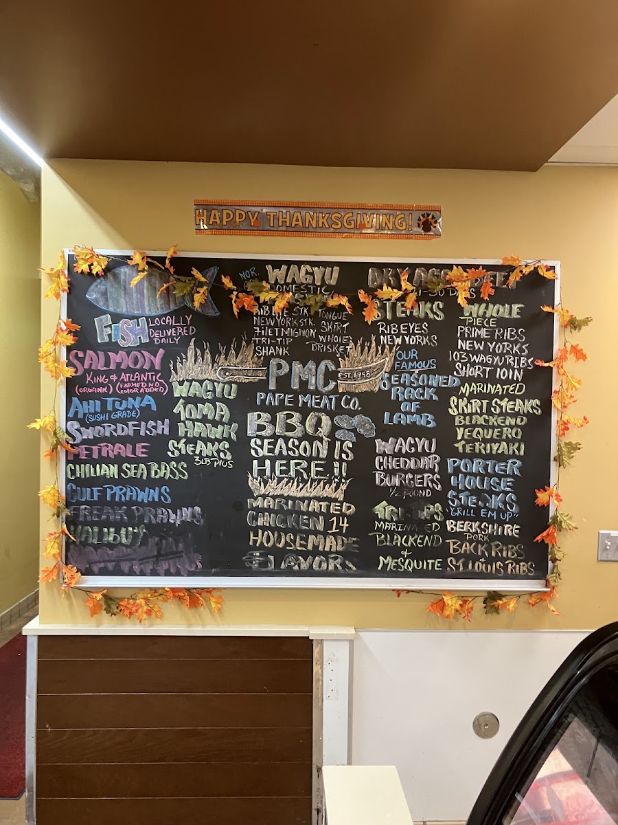 The menu at Pape Meat Co primarily features a selection of quality meats, including dry aged beef and various steak cuts. As a butcher shop, the offerings focus on fresh, trimmed meats suitable for a range of cooking styles and occasions. Customers can find prime rib, ribeye, picanha, pork chops, and other specialty cuts. Additionally, seafood options are available, expanding the choice beyond traditional beef and pork.